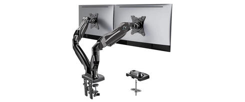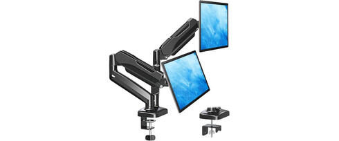 We checked out a bunch of dual monitor stands, and there's really something for everyone. There are arms that move with springs, stands with wide bases, and all sorts of features depending on what you need.