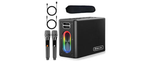 Our next favorite karaoke machine has 150W of output power, delivering crystal clear sound that will make you feel like you're singing in a professional studio. The 15000mAH high-capacity battery ensures that the party never stops, and the LED lights add a fun visual element to your performance. With two wireless microphones, you can duet with a friend or go solo with ease. The machine supports TWS, REC, AUX, USB, and TF connectivity options, making it easy to play your favorite tunes from any device.
