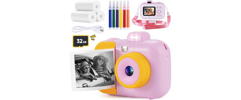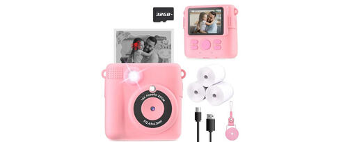 Introducing the best kids' camera—a delightful instant-print camera that sparks creativity and fun for kids aged 3-12. With its one-second black-and-white photo printing and vibrant color photo storage, this camera is pure magic. Kids can explore their imagination with 15 scene filters, 16 stickers, and doodle-ready prints. It's more than just a camera—it’s a mini adventure tool with a 2.4-inch screen, 1080P video, 16X zoom, and even built-in games and music. Designed for safety with soft, non-toxic materials, it’s lightweight and perfect for little hands. The included 32GB SD card and rechargeable battery ensure endless fun and memories on the go.