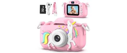 This kids' camera makes capturing memories a breeze for little photographers! With 8.0 MP photos and 1080P video, kids can take crystal-clear pictures and videos effortlessly. Its upgraded dual-camera design lets children snap selfies easily, and the fun stickers and photo frames add a playful touch. The shockproof, soft plastic body ensures safety and durability, while the portable lanyard makes it easy to carry around. It even comes with a 32GB SD card to store thousands of precious moments. Perfect for birthdays or holidays, this camera is an exciting gift to inspire creativity and encourage kids to explore their world.